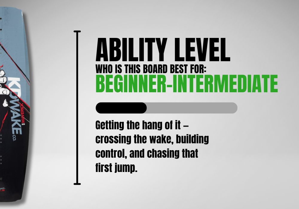 KD designed the Maverick Wakeboard with riders in mind, featuring a quick-reacting core for huge pop and tapered flutes for smooth wake release. Its durable Top Seam Technology Rails handle every challenge, making it perfect for thrill-seekers or casual cruisers alike.